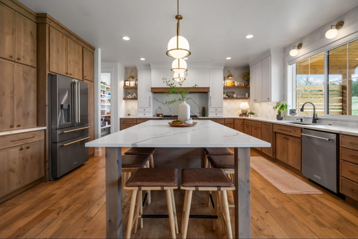 Many J&F Construction homes blend classic Montana influences with modern design elements. Natural materials such as wood and stone are paired with contemporary layouts, large windows, and clean finishes.